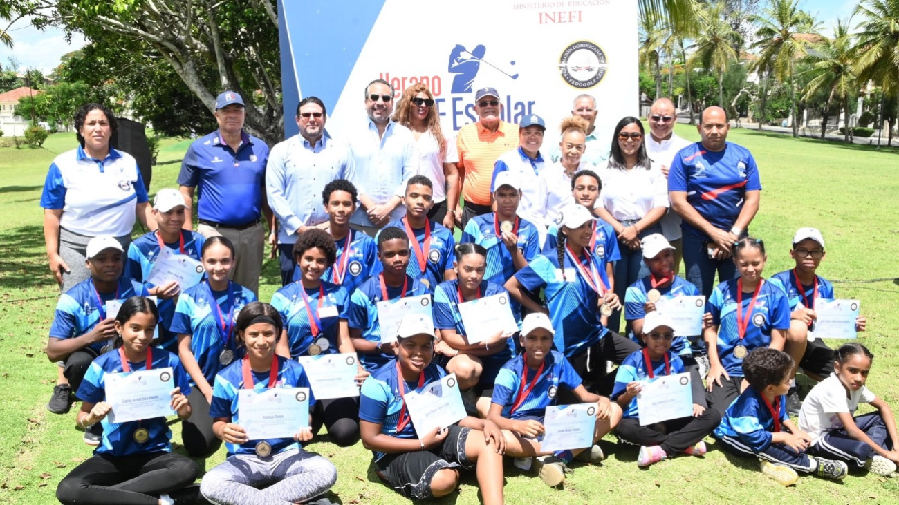 Santo Domingo.– El Instituto Nacional de Educación Física (Inefi) y la Federación Dominicana de Golf (Fedogolf) clausuraron este miércoles el Campamento de Verano de Golf Escolar 2025, una iniciativa pionera celebrada en el Campo Isabelle Villa, ubicado en el sector Arroyo Hondo de la capital.